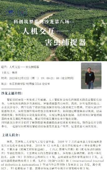 2023年12月12日,一场沙龙在科创学院举行,主题为“人机交互——害虫捕捉器”。此次沙龙汇聚了众多对科技创新充满热情的同学,共同探讨人机交互技术与害虫捕捉器的结合应用。
